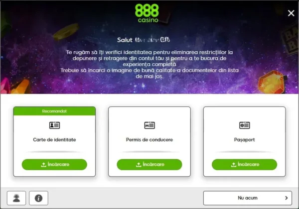 Știai că!? În cazul în care cartea de identitate folosită la verificarea contului a expirat, este recomandat să trimiți o poză a actului de identitate nou. Odată ce acesta este eliberat de autorități este bine să contactezi cazinoul. Astfel, poți evita suspendarea contului sau limitarea anumitor servicii oferite de operator