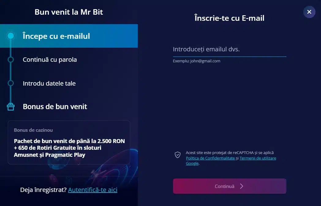 Înregistrează-te pe platforma Mr Bit