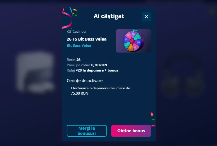 Majoritatea ofertelor de la Roata Norocului necesită efectuarea unei depuneri la Mr Bit. Așadar, pentru a activa un premiu câștigat la Roata Norocului este necesar să depui minim 50 RON – 75 RON în funcție de bonusul câștigat.