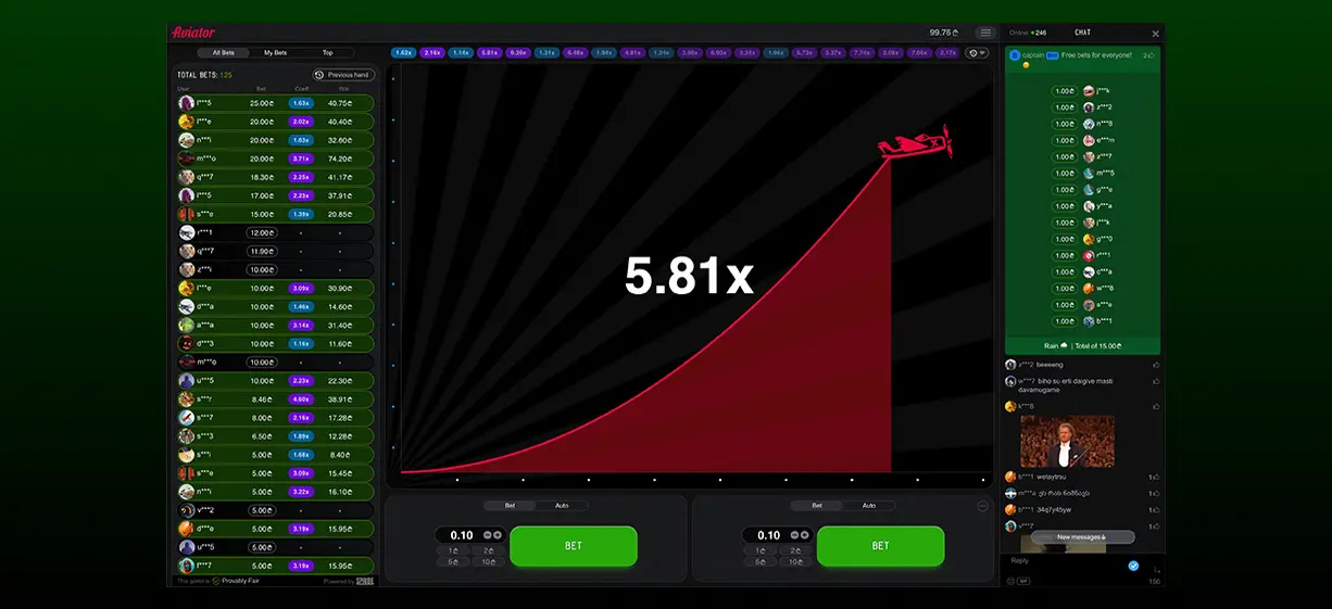 De exemplu, dacă pariezi 10 RON și multiplicatorul de lângă avion a fost x4, vei câștiga 40 RON. Totuși, trebuie să ții cont de faptul că avionul poate decola oricând, ceea ce înseamnă că poți pierde întregul pariu.